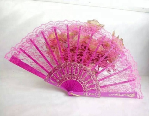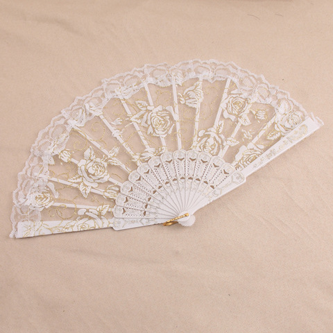 Abanico de mano de 23cm de encaje plegable de plástico recién llegado, venta al por mayor, abanico antiguo personalizado para decoración de boda